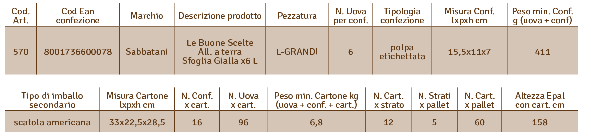 Queste uova, particolarmente indicate per realizzare pasta e dolci, sono deposte dalle galline che vivono nei nostri allevamenti a terra: ambienti protetti e confortevoli, dove sono libere di razzolare, appollaiarsi e becchettare mangimi a base di cereali, che produciamo in modo specifico per ottenere il colore intenso del tuorlo.